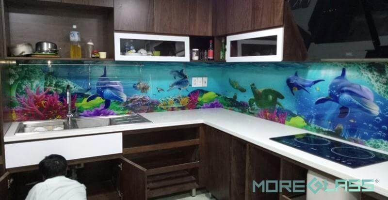 Chỉ cần thay thế bức tường phòng bếp lát gạch cũ bằng một mẫu thiết kế kính ốp bếp in 3D tranh phong cảnh, căn bếp của bạn sẽ trở nên sinh động hơn.
